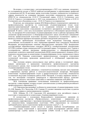 9. Пясецкая, И.Ш. Интеграция стандартов Worldskills компетенции “Администрирование отеля” в профессиональную подготовку специалистов индустрии гостеприимства / И.Ш. Пясецкая // Журнал “Современная высшая школа: инновационный аспект”. - 2019. - №4 (46). - С.74-80. - Текст: электронный // Научная электронная библиотека КиберЛенинка [сайт]. - URL: https://cyberleninka.ru/article/n/integratsiya-standartov-worldskills-kompetentsii-administrirovanie-otelya-v-professionalnuyu-podgotovku-spetsialistov-industrii (дата обращения: 03.03.2025).