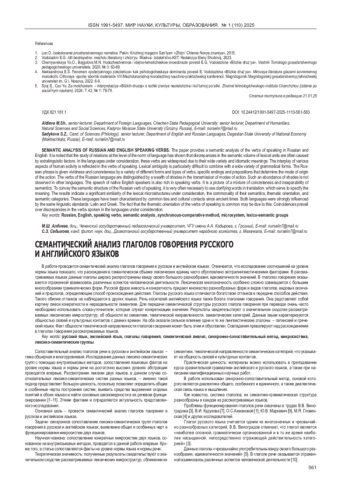6. Ермолаева И.А. Семантическая классификация глаголов речи в русском языке. Вестник СПбГУ. Язык и литература. 2017; Т. 14, Выпуск 3: 362-375. EDN: ZNIKCL