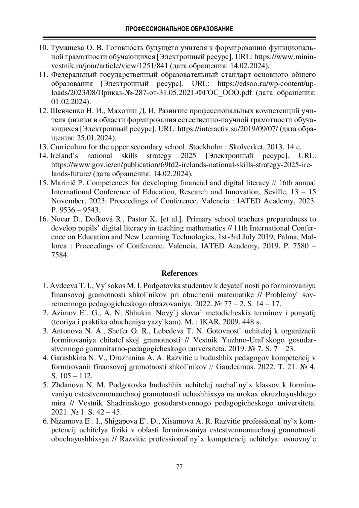 12. Шевченко Н. И., Махотин Д. И. Развитие профессиональных компетенций учителя физики в области формирования естественно-научной грамотности обучающихся [Электронный ресурс]. URL: https://interactiv.su/2019/09/07 (дата обращения: 25.01.2024).