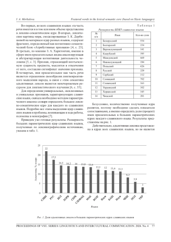 Статья: ПРИЗНАКОВЫЕ СЛОВА В ЛЕКСИКО-СЕМАНТИЧЕСКОМ ЯДРЕ (НА МАТЕРИАЛЕ СЛАВЯНСКИХ ЯЗЫКОВ) (2024)
