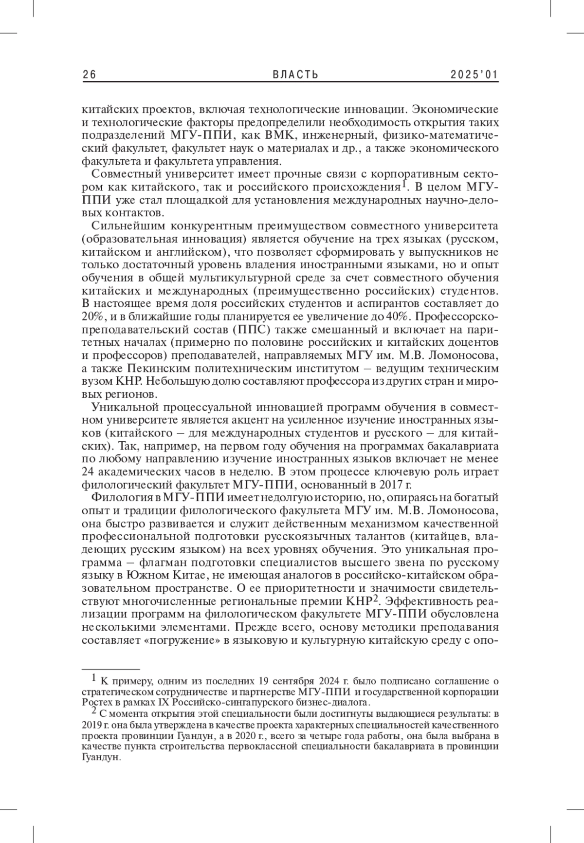ЧЖОУ С., АНДРЮШИНА Е. В. СОВМЕСТНЫЕ УНИВЕРСИТЕТЫ КАК ИННОВАЦИОННЫЙ ФОРМАТ ИНТЕРНАЦИОНАЛИЗАЦИИ ВЫСШЕГО ОБРАЗОВАНИЯ (НА ПРИМЕРЕ СОВМЕСТНОГО УНИВЕРСИТЕТА МГУ-ППИ В ШЭНЬЧЖЭНЕ) // ВЛАСТЬ. 2025. ТОМ 33 № 1