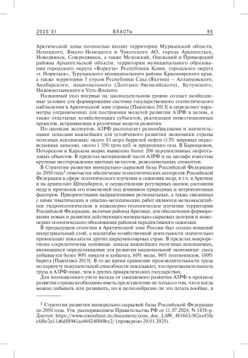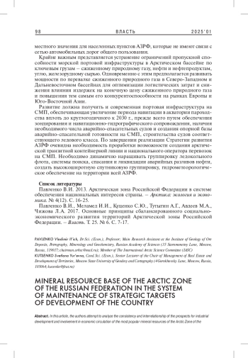 2. Павленко В.И., Меламед И.И., Куценко С.Ю., Тутыгин А.Г., Авдеев М.А., Чижова Л.А. 2017. Основные принципы сбалансированного социально-экономического развития территорий Арктической зоны Российской Федерации. - Власть. Т. 25. № 6. С. 7-17. EDN: YULOAP