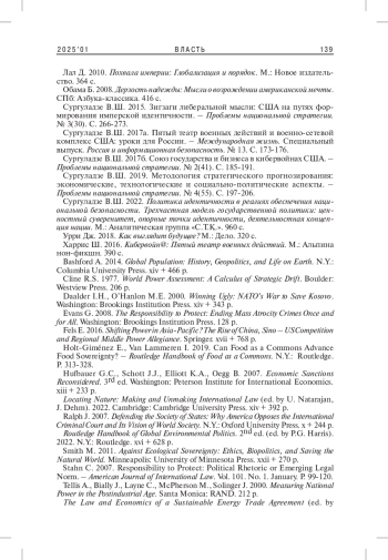 10. Сургуладзе В.Ш. 2015. Зигзаги либеральной мысли: США на путях формирования имперской идентичности. - Проблемы национальной стратегии. № 3(30). С. 266-273. EDN: UNEWRN