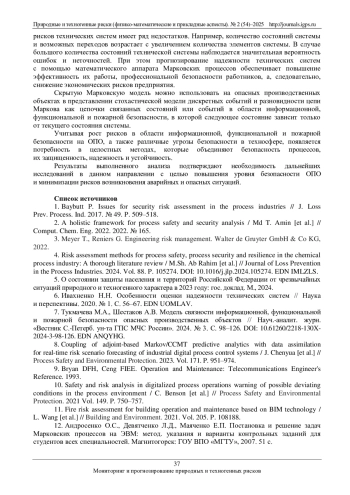 Ключевые фразы: математическая модель, МАРКОВСКАЯ МОДЕЛЬ, информационная безопасность, функциональная безопасность, пожарная безопасность, опасный производственный объект, техносфера