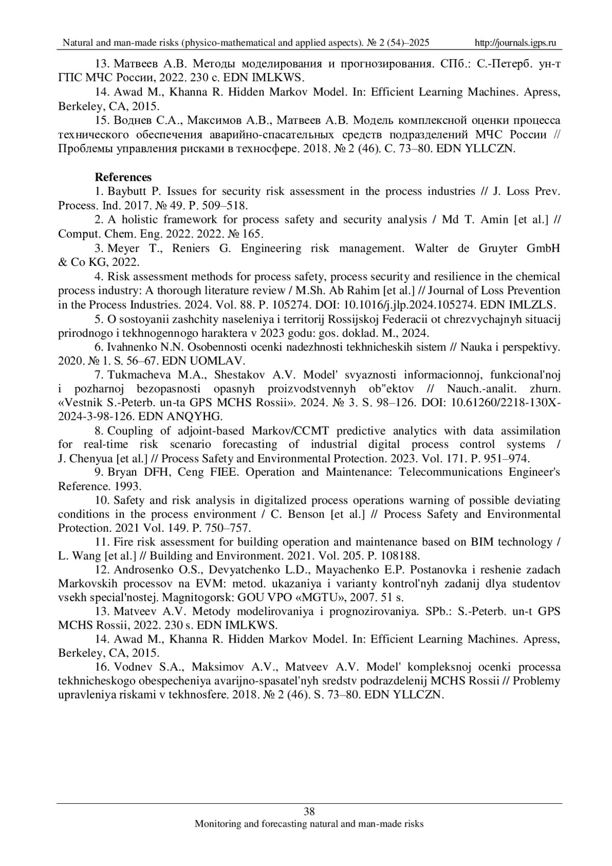 Журнал: ПРИРОДНЫЕ И ТЕХНОГЕННЫЕ РИСКИ (ФИЗИКО-МАТЕМАТИЧЕСКИЕ И ПРИКЛАДНЫЕ АСПЕКТЫ)