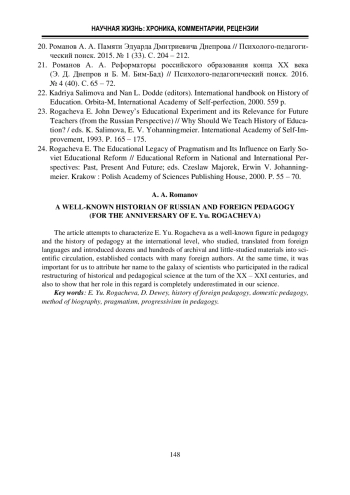 20. Романов А. А. Памяти Эдуарда Дмитриевича Днепрова // Психолого-педагогический поиск. 2015. № 1 (33). С. 204 - 212.