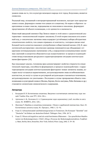 1. Болдырев Н. Н. Когнитивная семантика. Введение в когнитивную лингвистику: курс лекций. Тамбов: Изд. дом ТГУ, 2014. 236 с. EDN: TZCWPV