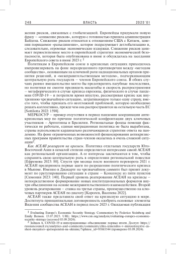2. Королев А.С., Васенева Е.А. 2022. Инструменты обеспечения стрессоустойчивости АСЕАН в условиях кризисов: сравнительный анализ. - Юго-Восточная Азия: актуальные проблемы развития. Т. 2. № 2(55). С. 34-49. EDN: KCZFXS