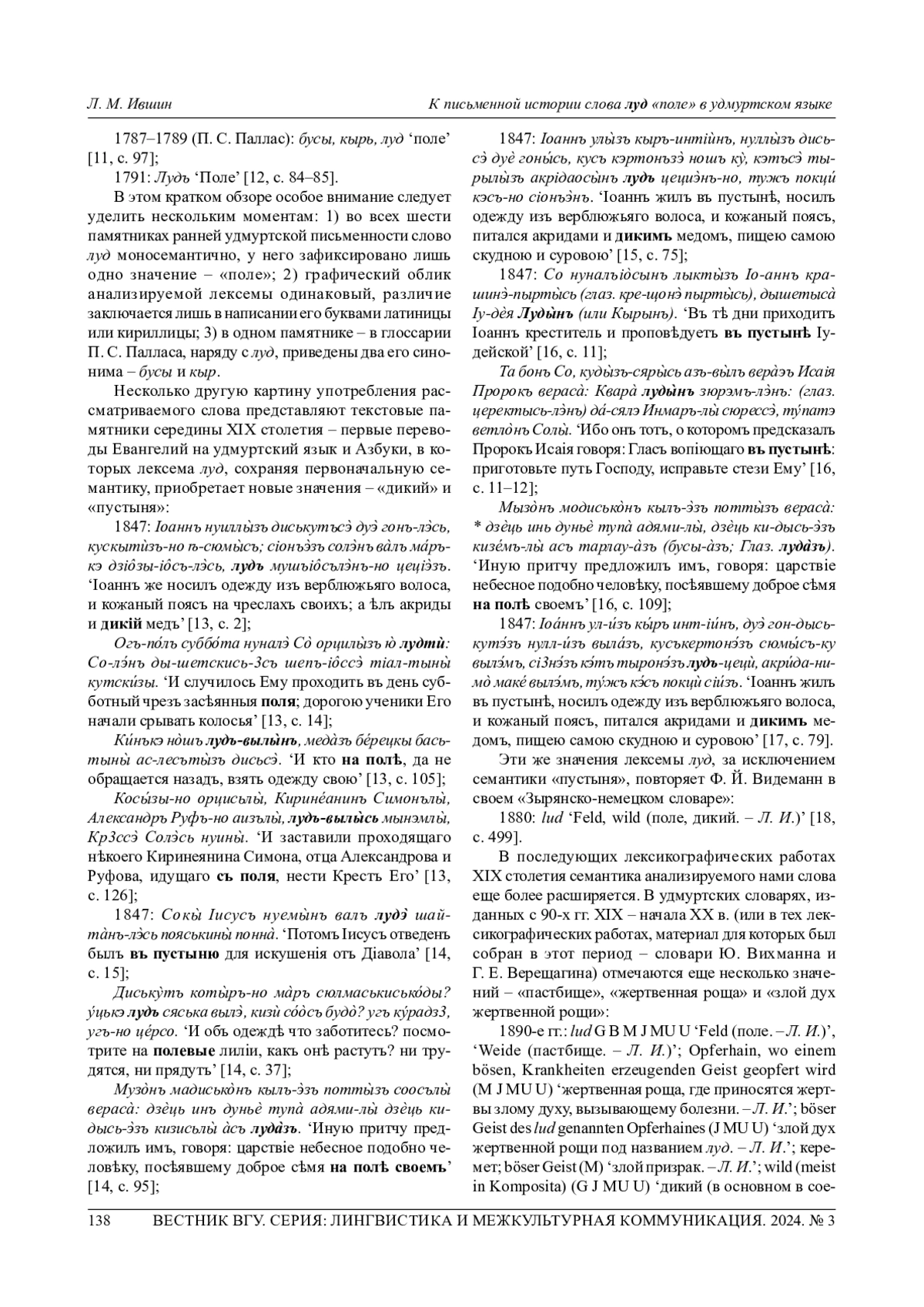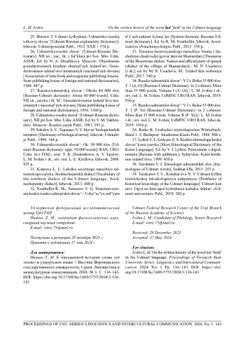 5. Ившин Л. М. Лексика памятников удмуртской письменности XVIII века: монография. УдмФИЦ УрО РАН. Ижевск, 2023. 216 с. EDN: GUOQXO