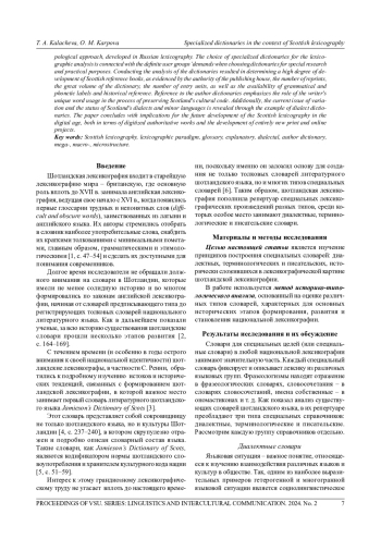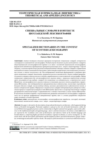 Статья: СПЕЦИАЛЬНЫЕ СЛОВАРИ В КОНТЕКСТЕ ШОТЛАНДСКОЙ ЛЕКСИКОГРАФИИ (2024)