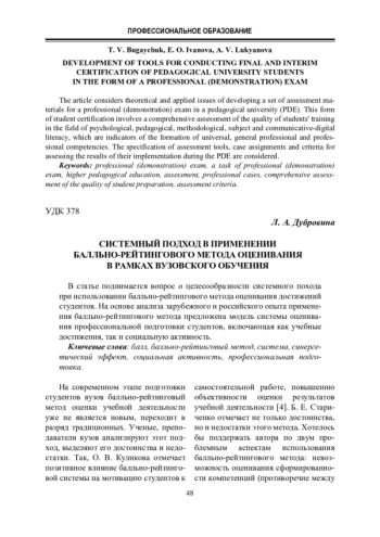 Статья: Системный подход в применении балльно-рейтингового метода оценивания в рамках вузовского обучения (2025)