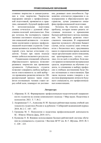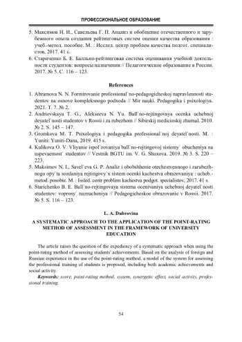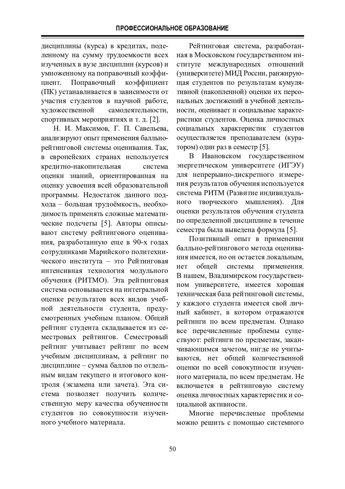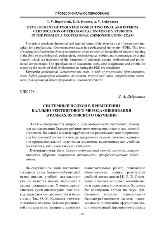ДУБРОВИНА Л. А. СИСТЕМНЫЙ ПОДХОД В ПРИМЕНЕНИИ БАЛЛЬНО-РЕЙТИНГОВОГО МЕТОДА ОЦЕНИВАНИЯ В РАМКАХ ВУЗОВСКОГО ОБУЧЕНИЯ // ВЕСТНИК ВЛАДИМИРСКОГО ГОСУДАРСТВЕННОГО УНИВЕРСИТЕТА ИМ. АЛЕКСАНДРА ГРИГОРЬЕВИЧА И НИКОЛАЯ ГРИГОРЬЕВИЧА СТОЛЕТОВЫХ. СЕРИЯ: ПЕДАГОГИЧЕСКИЕ И ПСИХОЛОГИЧЕСКИЕ НАУКИ. 2025. №1 (79)
