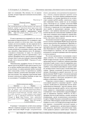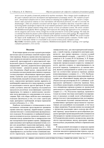 Статья: ОБЪЕКТИВНЫЕ ПАРАМЕТРЫ СУБЪЕКТИВНОЙ ОЦЕНКИ КАЧЕСТВА ПЕРЕВОДА (2024)