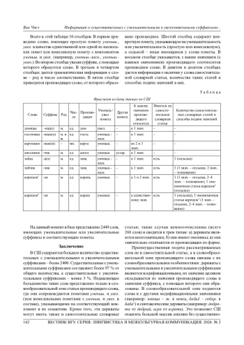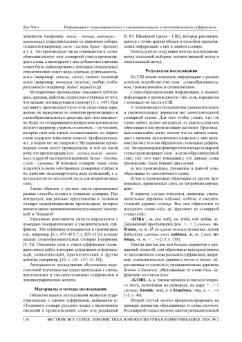 Статья: ИНФОРМАЦИЯ О СУЩЕСТВИТЕЛЬНЫХ С УМЕНЬШИТЕЛЬНЫМИ И УВЕЛИЧИТЕЛЬНЫМИ СУФФИКСАМИ В "ТОЛКОВОМ СЛОВАРЕ" Н. Ю. ШВЕДОВОЙ (2024)