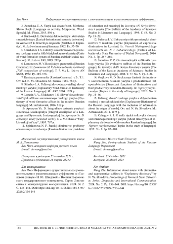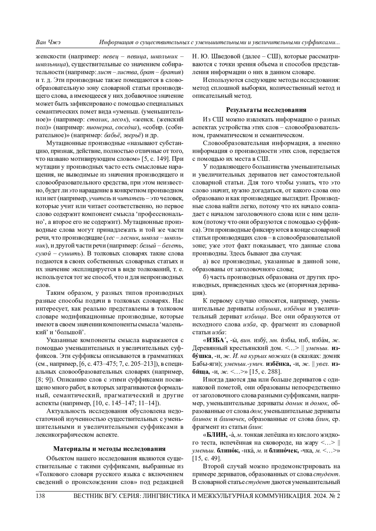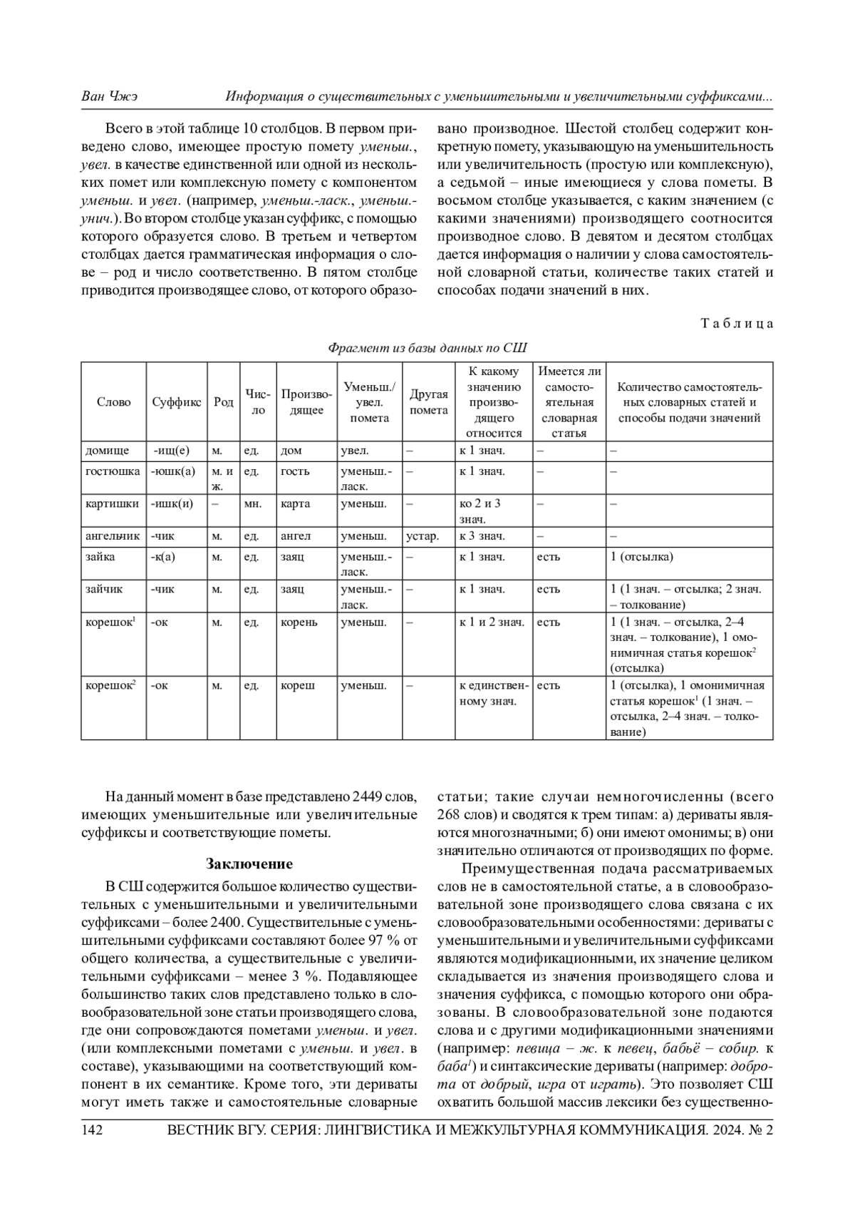 ВАН Ч. ИНФОРМАЦИЯ О СУЩЕСТВИТЕЛЬНЫХ С УМЕНЬШИТЕЛЬНЫМИ И УВЕЛИЧИТЕЛЬНЫМИ СУФФИКСАМИ В "ТОЛКОВОМ СЛОВАРЕ" Н. Ю. ШВЕДОВОЙ // ВЕСТНИК ВОРОНЕЖСКОГО ГОСУДАРСТВЕННОГО УНИВЕРСИТЕТА. СЕРИЯ: ЛИНГВИСТИКА И МЕЖКУЛЬТУРНАЯ КОММУНИКАЦИЯ. 2024. № 2