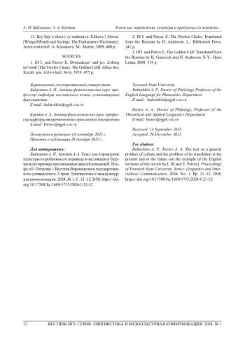 16. Ilf I. and Petrov E. The Golden Calf / translated from the Russian by K. Gurevich and H. Anderson. N. Y.: Open Letter, 2009. 376 p.