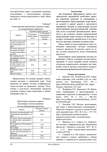 В данной статье рассматривается применение метода объединения прогнозов для повышения точности прогноза затрат на осуществление перевозок на примере перевозок автобусным транспортом. Авторами перечисляются основные методы прогнозирования затрат. Наиболее подробно рассматривается метод прогнозирования затрат посредством выведения функциональной зависимости: приводится алгоритм построения доверительных интервалов для прогнозирования затрат на осуществление перевозок. Формулируется предложение производить сопоставление полученных на основе функциональной зависимости прогнозных затрат транспорта на один километр пробега с уровнями удельных затрат, составляющими доверительный интервал