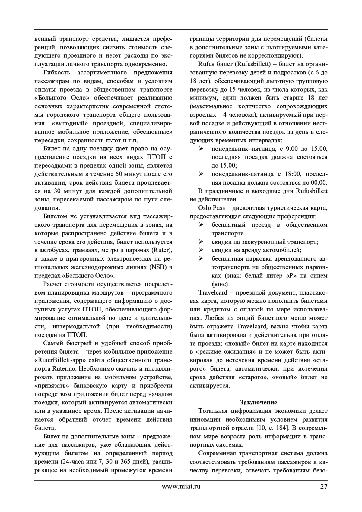 В данной статье авторами отмечается рост активности процессов цифровизации в современной экономике и рассматривается влияние вызовов современности на транспортную отрасль. Выполнен обзор организации работы транспортной системы городской агломерации «Большого Осло». На основе изучения иностранного опыта отмечена перспективность использования тарифного меню для увеличения уровня покрытия затрат перевозчиков доходами от оплаты проезда.
