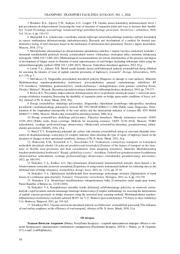 8. Кротов, Р.Г. Повышение долговечности деформационных швов на пролетных строениях мостов в условиях интенсивного движения транспорта: автореф. дис. … канд. техн. наук: 05.23.11 / Кротов Радион Геннадьевич; Белорусский национальный технический университет. - Минск, 2019. - 20 с.