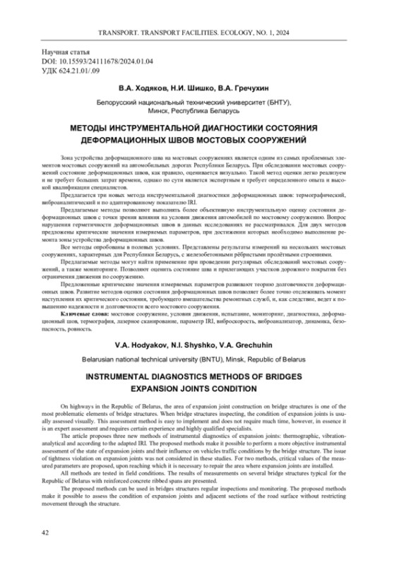 13. Ходяков, В.А. Опыт применения дистанционных инструментальных методов сбора данных о деформированном состоянии мостовых сооружений / В.А. Ходяков, А.О. Коликов // Автомобильные дороги и мосты. - 2023. - № 1 (31). - С. 25-34.