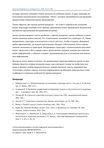 Статья: К ВОПРОСУ О РЕКУРСИВНЫХ ЛИНГВИСТИЧЕСКИХ СТРУКТУРАХ В ХУДОЖЕСТВЕННОМ ТЕКСТЕ (2024)