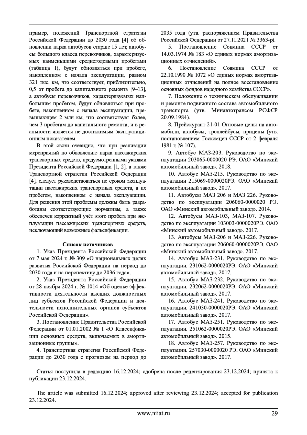 В статье рассмотрены исследованные в ходе НИР по государственному контракту среднегодовые пробеги транспортных средств пассажирских транспортных средств автобусного и наземного городского электрического транспорта, выполняющего регулярные перевозки пассажиров. Обоснована необходимость использования показателя «пробег, накопленный с начала эксплуатации» при реализации мероприятий по обновлению парка пассажирских транспортных средств. Итогом работы являются соответствующие предложения.