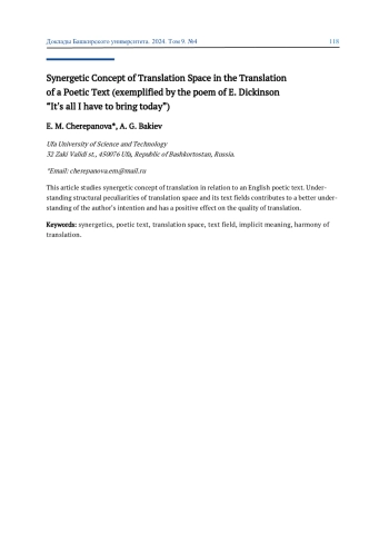 3. Кушнина Л. В. Основные принципы синергетики перевода // Вестник Удмуртского ун-та. 2011. Серия: История и филология: Вып. 4. С. 173. EDN: ONSZSB