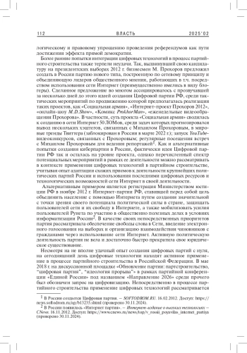 1. Ежов Д.А. 2024. Трансформация института политических партий в России в условиях цифровизации и виртуализации. - Социально-гуманитарные знания. № 10. С. 156-159. EDN: NSWZLP