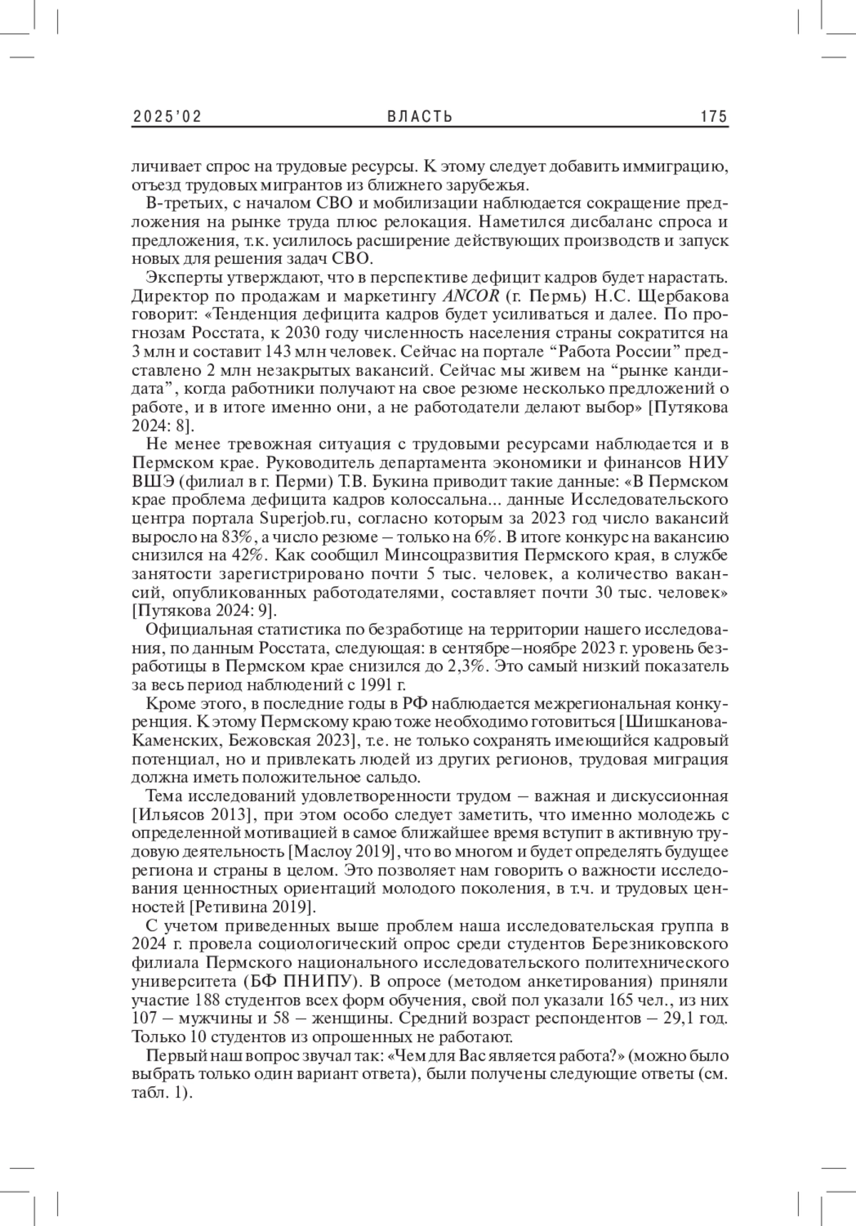 14. Путякова П. 2024. Кадровый переучет. Как дефицит рабочей силы тормозит экономический рост. - Новый компаньон (Пермь). № 2(1126). 6 февраля 2024. С. 8-9.