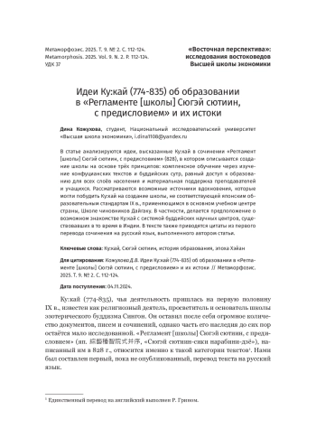 КОЖУХОВА Д. ИДЕИ КУ: КАЙ (774-835) ОБ ОБРАЗОВАНИИ В «РЕГЛАМЕНТЕ [ШКОЛЫ] СЮГЭЙ СЮТИИН, С ПРЕДИСЛОВИЕМ» И ИХ ИСТОКИ // МЕТАМОРФОЗИС. 2025. ТОМ 9, № 2