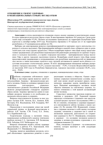 В статье анализируется отношение отцов к своему здоровью в межэтнических семьях. В статье приводятся результаты опроса отцов. В анкетировании опрошено 363 родителя. Среди родителей отцы составляют 47,4%. Полевое исследование проводилось на территории Республики Башкортостан в сентябре-ноябре 2019 года. Респонденты опрошены в 19 городах (из 21 на территории республики), в 31 муниципальном районе (из 54).