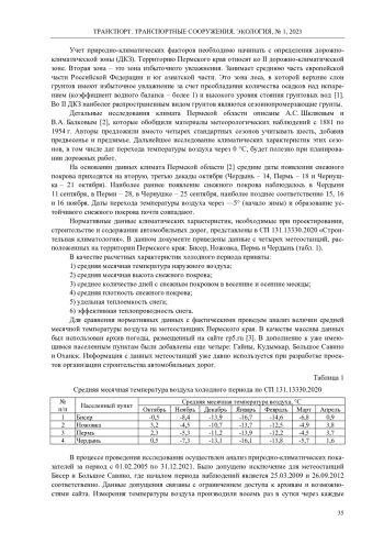 Учет природно-климатических факторов необходимо начинать с определения дорожноклиматической зоны (ДКЗ). Территорию Пермского края относят ко II дорожно-климатической зоне. Вторая зона – это зона избыточного увлажнения. Занимает среднюю часть европейской части Российской Федерации и юг азиатской части. Это зона леса, в которой верхние слои грунтов имеют избыточное увлажнение за счет преобладания количества осадков над испарением (коэффициент водного баланса – более 1) и высокого уровня стояния грунтовых вод [1]. Во II ДКЗ наиболее распространенным видом грунтов являются сезоннопромерзающие грунты