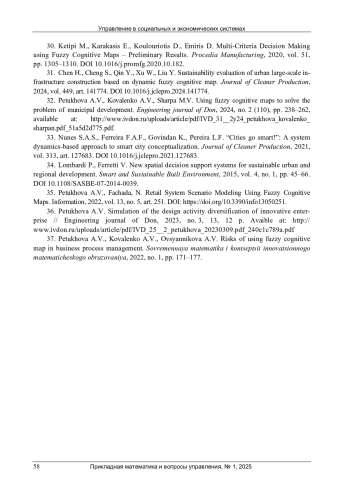 32. Петухова, А. В. Использование нечетких когнитивных карт для решения задачи развития муниципальных образований / А. В. Петухова, А. В. Коваленко, М. В. Шарпан // Инженерный вестник Дона. - 2024. - № 2(110). - С. 238-262. - URL: http://www.ivdon.ru/uploads/article/pdf/IVD_31__2y24_petukhova_kovalenko_sharpan.pdf_51a5d2d775.pdf. EDN: LTRFOG