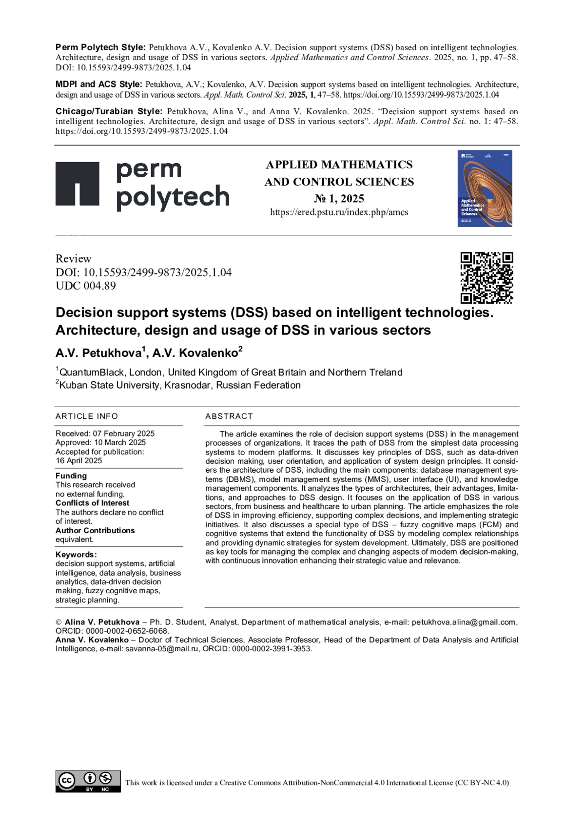 Системы поддержки принятия решений (СППР) стали незаменимыми инструментами для организаций, которые сталкиваются со все более сложными и изменчивыми условиями. Начав свой путь как системы обработки данных, СППР эволюционировали в сложные платформы благодаря достижениям в таких технологиях, как искусственный интеллект (ИИ), машинное обучение (МО) и углубленный анализ данных [1; 2]. Эти передовые технологии позволяют СППР эффективно работать с большими объемами данных, выявляя закономерности и предоставляя точные прогнозы развития систем.