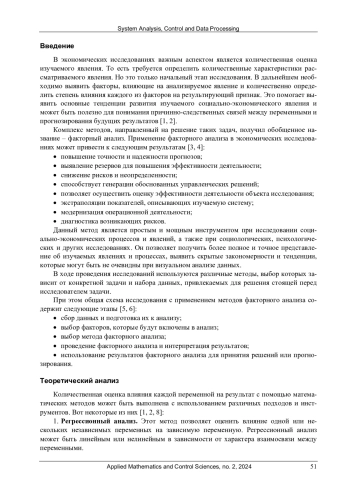 Основная задача факторного анализа - это выявление неявных факторов, объясняющих связи между наблюдаемыми переменными. Это дает возможность получить более полное и точное представление об изучаемых явлениях и процессах, что позволяет установить скрытые закономерности и тенденции, которые далеко не всегда возможно определить при визуальном анализе данных. Эти скрытые переменные могут быть использованы для упрощения данных и понимания основных механизмов, лежащих в основе изучаемого явления. Количественная оценка влияния каждой переменной на результат с помощью математических методов может быть выполнена с использованием различных подходов и инструментов. Приводится краткий обзор основного инструментария. Выбор конкретного метода зависит от характера данных, целей исследования и доступных ресурсов. Известно, что основным недостатком факторного анализа является невыполнение переместительного (коммуникативного) закона умножения, что объясняется возникновением неразложимого остатка. Неразложимый остаток объясняется тем, что рассматриваемая модель не полностью учитывает все факторы, влияющие на изучаемое явление, а поэтому вариация признака не будет определяться только рассматриваемыми факторами, то есть останется какая-то часть, не распределенная между факторами. В связи с этим величина влияния факторов на изменение результативного показателя меняется в зависимости от места, на которое поставлен тот или иной фактор в детерминированной модели. С увеличением числа факторов-сомножителей резко возрастает количество равноправных вариантов расчетов, так как увеличивается число возможных перестановок факторов. Таким образом, вариантов расчета степени влияния факторов на результирующий показатель достаточно много и выбор способа расчета зависит от целей исследования. При этом следует отметить, что количество вариантов, рассматриваемых возможных перестановок факторов можно уменьшить за счет агрегирования некоторых факторов. Важно только четко обосновать экономический смысл такого агрегированного показателя. Это обстоятельство дает возможность построения процедуры, позволяющей оценить неразложимый остаток. В статье рассматривается методика оценки неразложимого остатка. Величина неразложимого остатка может быть определена как разность данных, полученных в двух формах расчета, между значениями показателя в мультипликативной модели, где этот показатель стоит на последнем месте, и по другому способу расчета, где этот же фактор поставлен на первое место. Показано, что в ходе проведения факторного анализа имеется инвариантная константа, не зависящая от способа расчета. Приводится также способы уменьшения размерности исходной задача за счет агрегирования исходных факторов. Важно только четко обосновать экономический смысл такого агрегированного показателя. В статье приводится пример трехфакторной модели производительности труда, когда результативный показатель будет определяться тремя факторами: фондоотдачей, механовооруженностью рабочих и долей рабочих в общей численности предприятия. За счет объединения первых двух факторов в один произошла редукция задачи к двухфакторной модели производительности труда, зависящей от двух факторов: средней выработки рабочих и доли рабочих в общей чи