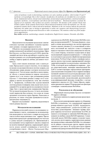 Статья: МАРКЕМНЫЙ АНАЛИЗ ЯЗЫКА РОМАНА АФРЫ БЕН ОРУНОКО, ИЛИ ЦАРСТВЕННЫЙ РАБ (2025)