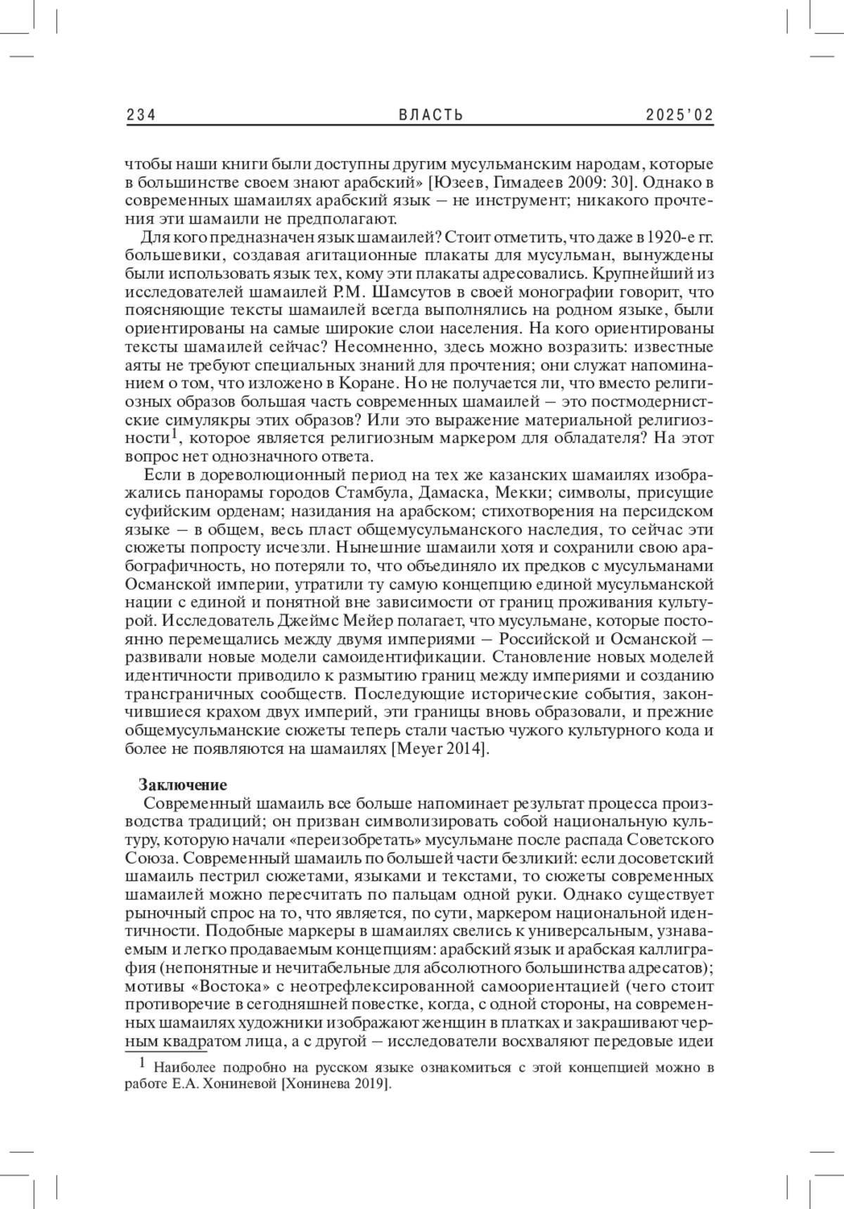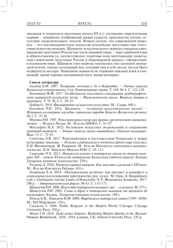 ЛУГОВСКАЯ Н. В. ЭВОЛЮЦИЯ СЮЖЕТОВ ШАМАИЛЕЙ КАК ОТРАЖЕНИЕ ЖИЗНИ ИСЛАМСКОГО СООБЩЕСТВА В РОССИИ // ВЛАСТЬ. 2025. ТОМ 33 № 2