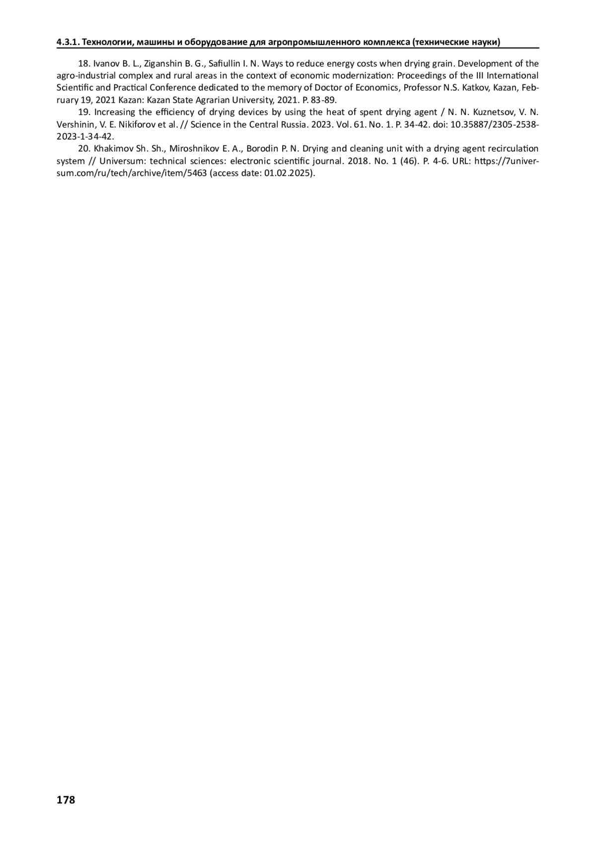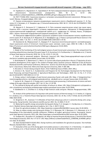 Статья: ТЕПЛОТЕХНИЧЕСКАЯ ЭФФЕКТИВНОСТЬ РЕЦИРКУЛЯЦИИ АГЕНТА СУШКИ ПРИ ПОДМЕШИВАНИИ СВЕЖЕГО ВОЗДУХА (2025)
