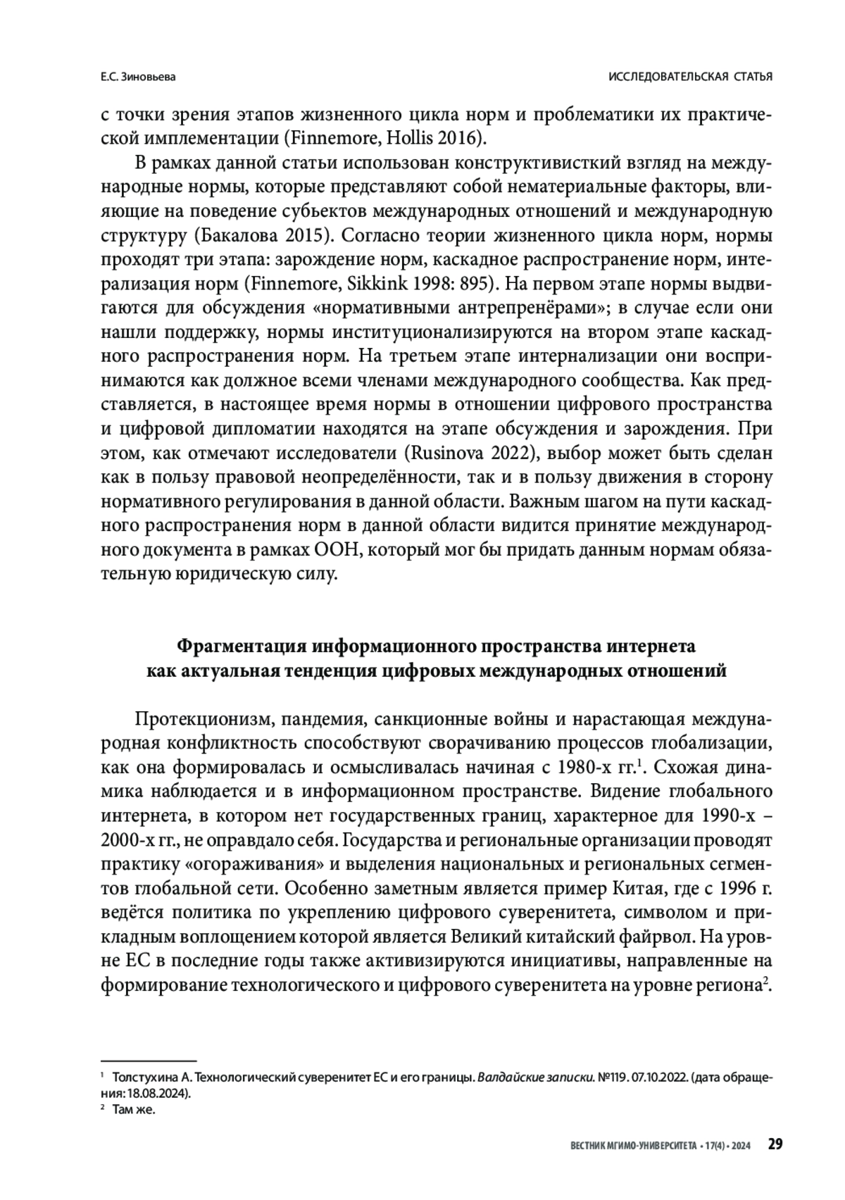 8. Зиновьева Е. С. 2022. Формирование цифровых границ и информационная глобализация: анализ с позиций критической географии Polis: Journal of Political Studies. No. 2. https://doi.org/10.22363/2313-0660-2022-22-2-352-371