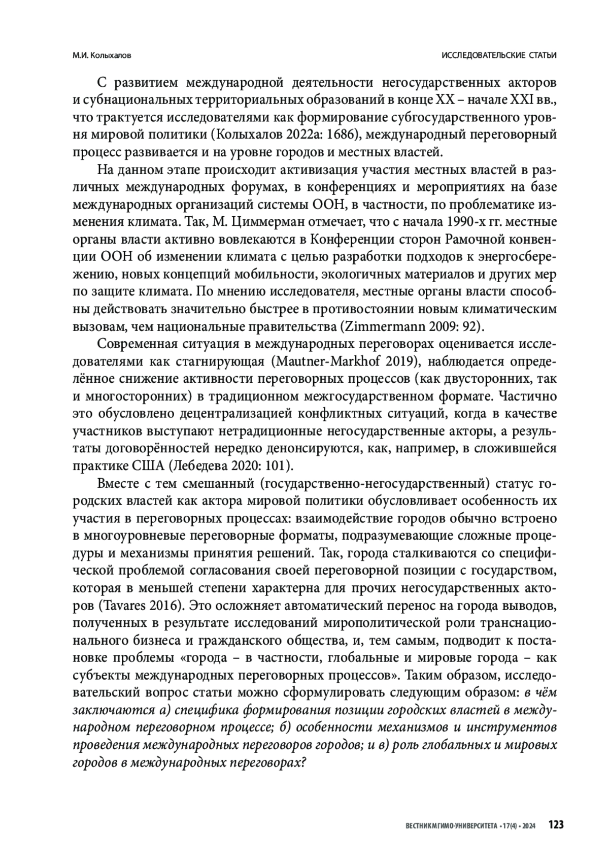 15. Колыхалов М.И. 2022b. Теоретические аспекты международной деятельности мегаполисов в транснациональной городской сети. Регионология. 30(4). С. 961-979. https://doi.org/10.15507/2413-1407.121.030.202204.961-979
