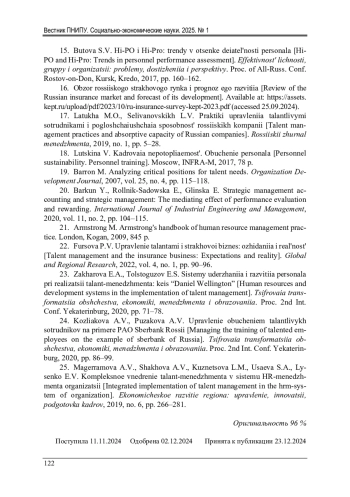 22. Фурсова, П.В. Управление талантами и страховой бизнес: ожидания и реальность / П.В. Фурсова // Global and Regional Research. - 2022. - Т. 4, № 1. - С. 90-96. EDN: EMOHIJ