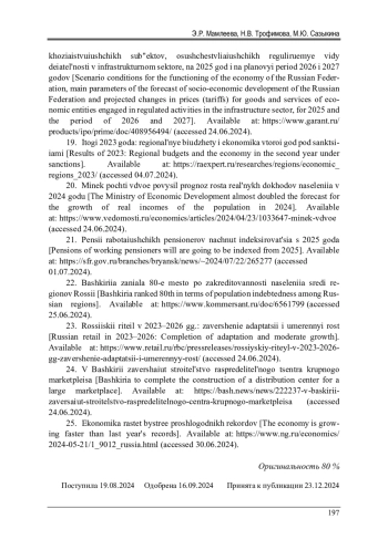 18. Сценарные условия функционирования экономики Российской Федерации, основные параметры прогноза социально-экономического развития Российской Федерации и прогнозируемые изменения цен (тарифов) на товары, услуги хозяйствующих субъектов, осуществляющих регулируемые виды деятельности в инфраструктурном секторе, на 2025 год и на плановый период 2026 и 2027 годов [Электронный ресурс]. - URL: https://www.garant.ru/products/ ipo/prime/doc/408956494/(дата обращения: 24.06.2024).