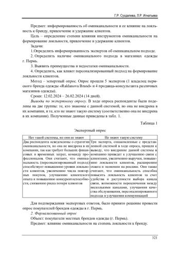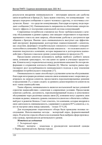 Современный рынок характеризуется высокой степенью конкуренции, глобализацией и высоким уровнем развития технологий. Изменение потребительских предпочтений и ожиданий также вносит свой вклад в конкурентную среду. Клиенты становятся более требовательными и обращают внимание не только на качество продукции, но и высокий уровень обслуживания, персонализацию и удобство взаимодействия. Поэтому в условиях такой жесткой конкуренции компаниям стало необходимо развивать стратегии взаимодействия с клиентами, интегрировать различные каналы коммуникаций с целью улучшения клиентского опыта. В статье представлены результаты анализа подходов к формированию потребительской лояльности с помощью омниканальности. На основе результатов экспертного и формализованного опросов авторами был разработан чек-лист по внедрению системы омниканальности как инструмента формирования потребительской лояльности в деятельность пермского магазина одежды «Raklanova Brand». Данный инструмент представляет собой набор рекомендаций и шагов, которые позволят компаниям структурировать и реализовать стратегии взаимодействия с клиентами через различные каналы связи. Работа подчеркивает важность создания единого клиентского опыта через различные каналы взаимодействия компании с клиентом, от физических магазинов до онлайн-платформ, что способствует улучшению узнаваемости бренда и повышению уровня доверия со стороны потребителей. Анализируются преимущества использования омниканального подхода для повышения лояльности клиентов и увеличения объемов продаж. Успешная реализация омниканальности становится важным фактором для формирования долгосрочных отношений с клиентами и достижения устойчивого роста бизнеса в условиях динамично меняющегося рынка. Результаты работы служат ценным ресурсом для компаний, которые стремятся адаптироваться к новым условиям рынка и повысить свою конкурентоспособность.