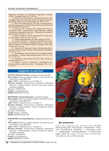 29. Xiong C.-B., Li Z., Zhai G.-J., Lu H.-L. New method for inspecting the status of submarine pipeline based on a multi-beam bathymetric system // Journal of Marine Science and Technology. 2016. Vol. 24.