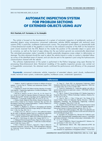 28. Bobkov V., Shupikova A., Inzartsev A. Recognition and Tracking of an Underwater Pipeline from Stereo Images during AUV-Based Inspection // J. Mar. Sci. Eng. 2023. Vol. 11. EDN: QQMJJP