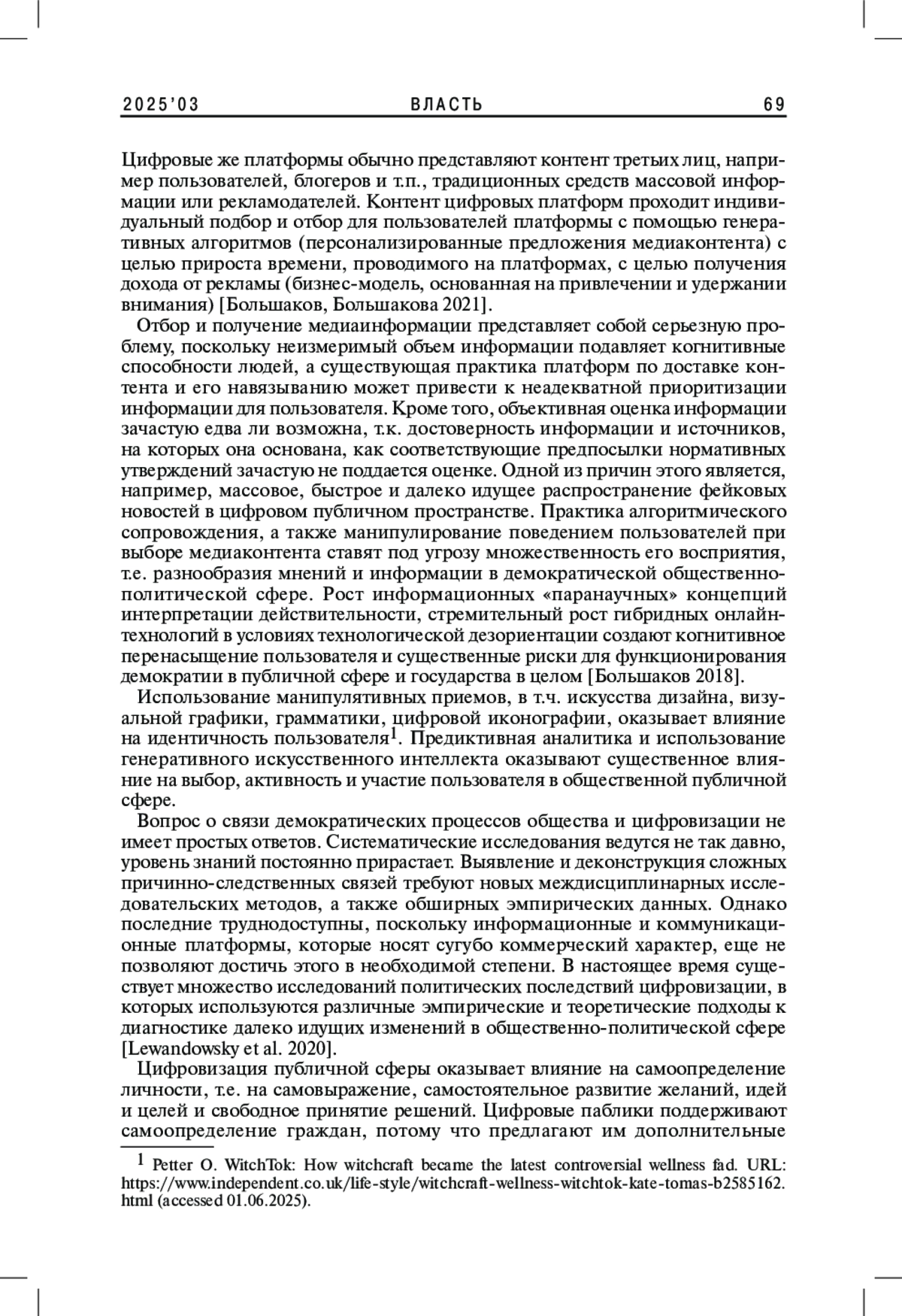 1. Большаков С.Н. 2018. Цифровая экономика и средства массовой информации в эпоху трансформаций технологий. - Социально-экономические, политические и исторические аспекты развития северных и арктических регионов России: материалы всероссийской научной конференции (с международным участием). Сыктывкар, 17-18 октября 2018 г. Сыктывкар: Изд-во КРАГСиУ. Ч. 2. С. 130-134. EDN: YXLAJF