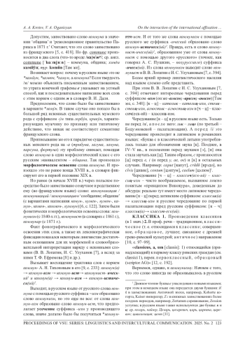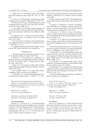 КРЕТОВ А. А., ОГАНИСЯН В.А. О ВЗАИМОДЕЙСТВИИ ИНТЕРНАЦИОНАЛЬНОЙ ПОДСИСТЕМЫ АФФИКСАЦИИ С ИСКОННОЙ ЛЕКСИКОЙ // ВЕСТНИК ВОРОНЕЖСКОГО ГОСУДАРСТВЕННОГО УНИВЕРСИТЕТА. СЕРИЯ: ЛИНГВИСТИКА И МЕЖКУЛЬТУРНАЯ КОММУНИКАЦИЯ. 2025. № 2