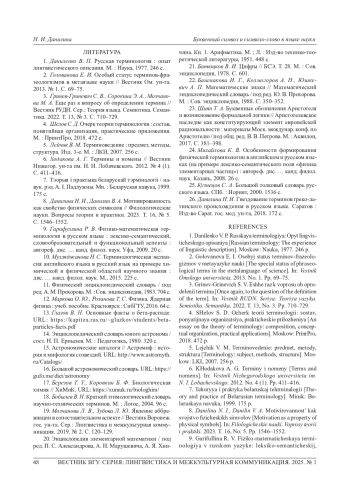 1. Даниленко В. П. Русская терминология: опыт лингвистического описания. М.: Наука, 1977. 246 с.