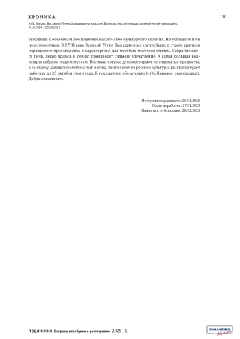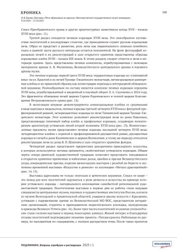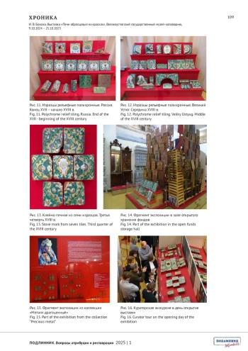 «Печи обрасцовые на красках» – выставка с таким названием открылась 9 октября 2024 года в зале открытого хранения фондов Великоустюгского государственного музея-заповедника и представляет художественную традицию, присущую изразцовому делу Великого Устюга. Ее оригинальные черты раскрывают предметы из коллекции музея, насчитывающей более пяти тысяч экспонатов. На выставке представлено более трехсот предметов. Это отдельные изразцы, печные клейма и полностью сохраненные печные комплекты, многие из которых экспонируются впервые. Впервые показаны архивные документы, рисунки, фотографии из музейных и частных архивов и коллекций. В их числе фотографии изразцовых печей и печные комплекты, атрибуция которых стала возможной благодаря материалам архива А. В. Филиппова, предоставленным доктором искусствоведения Е. А. Бобринской (рис. 1).