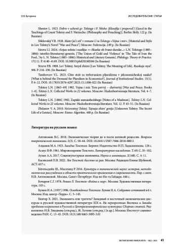 3. Brennan G. and Waterman A.M.C. 2021. Economics Meets War and Peace Tolstoy’s Implicit Social Theory. The Independent Review. A Journal of Political Economy. 3(25). P. 397-410.